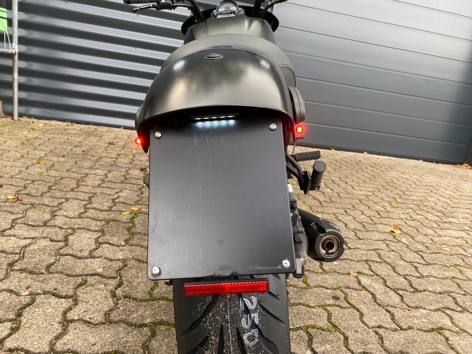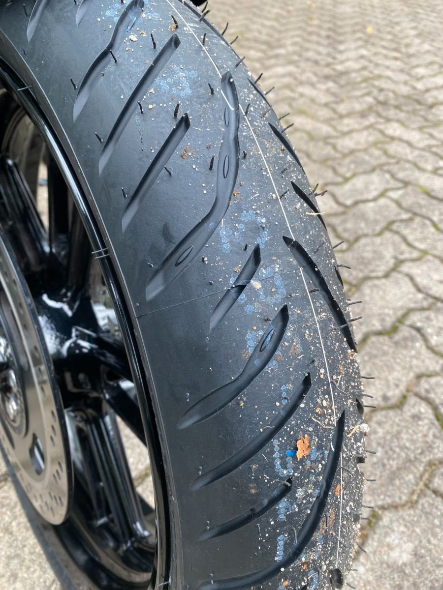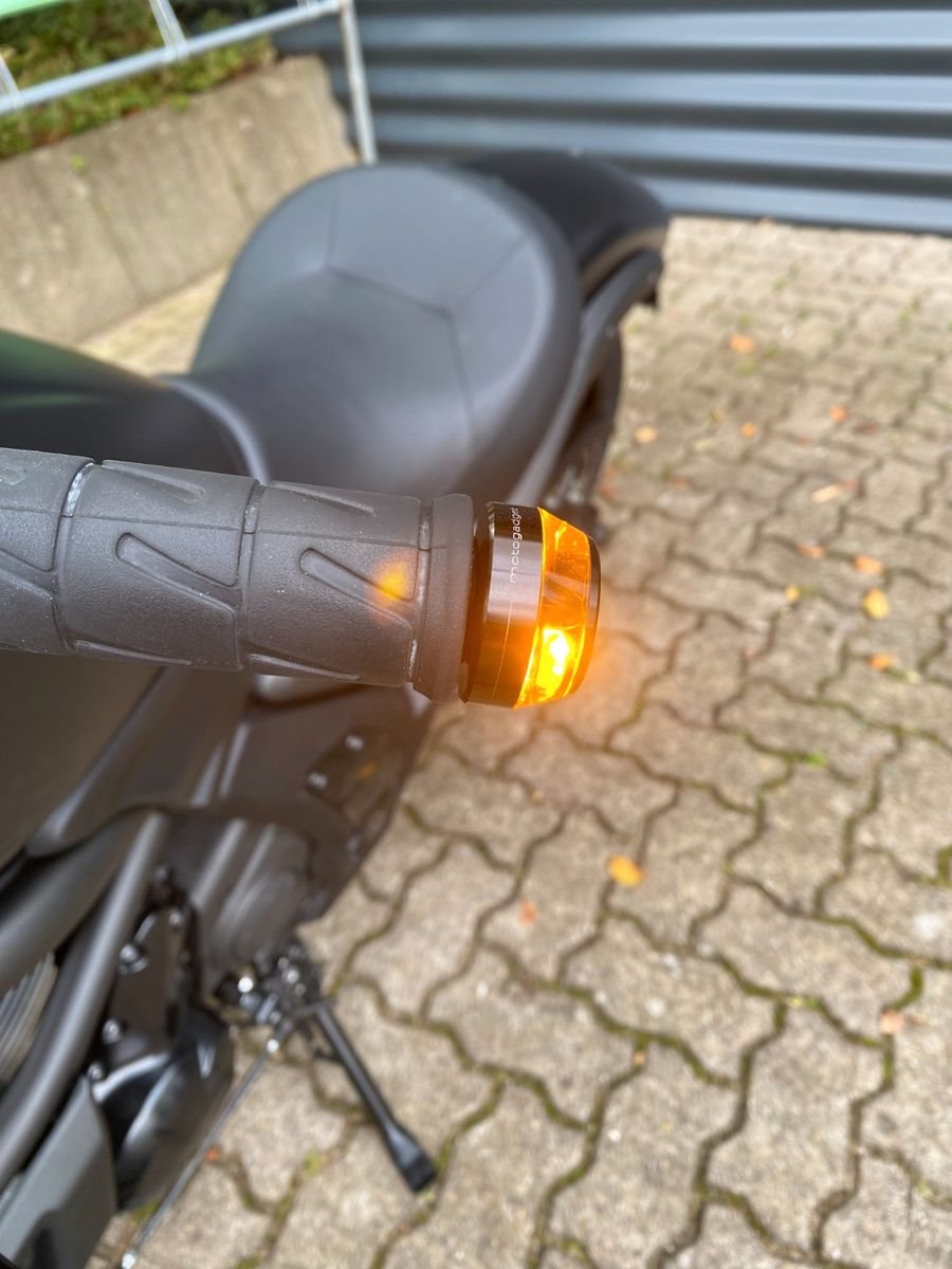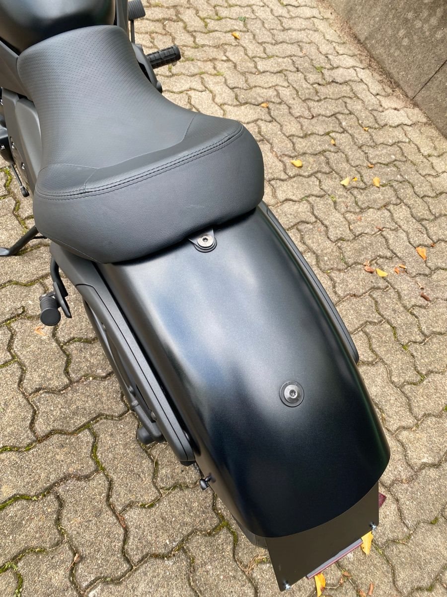 Das Fahrzeug ist ausgestattet mit der Batwing Lenkerverkleidung, Spiegel Montana, Keller Atto Blinkern hinten(Brems-,Rücklicht;Blinkfunktion), Lenkerendenblinkern Mo.Blaze, Brems.-u.Kupplungshebel Spiegler Tusker schwarz,