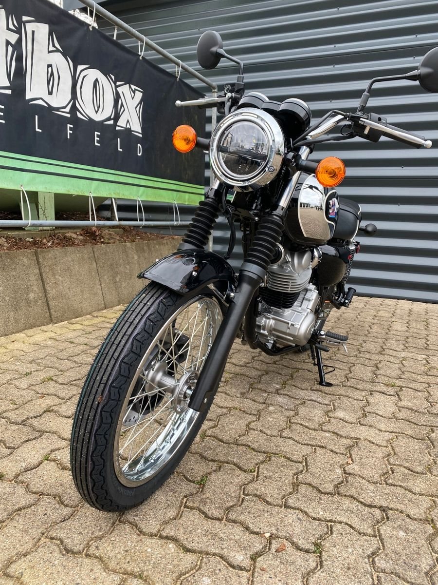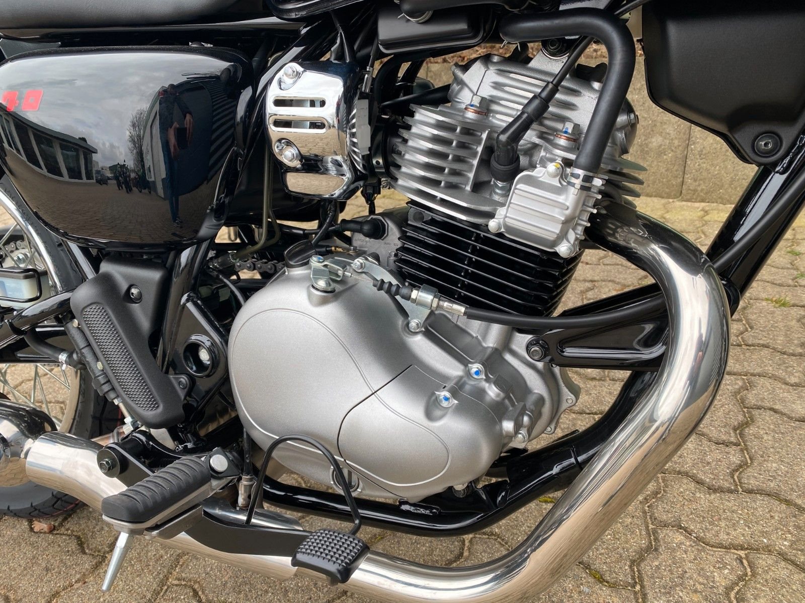Die Meguro S1 ist ein luftgekühltes Retro-Motorrad mit einem bewährten 233-cm-Einzylinder-Viertaktmotor, der klassische Vibes mit moderner Technik kombiniert. Der Motor liefert einen Wohfühlrythmus bei niedrigen Drehzahlen und einen lebendigen Charakter wenn man mal flotter fahren möchte. Dazu sorgen das geringe Gewicht, die niedrige Sitzhöhe und das schicke Design der 1960er Jahre für entspannte Ausflüge oder cooles City-Cruising.