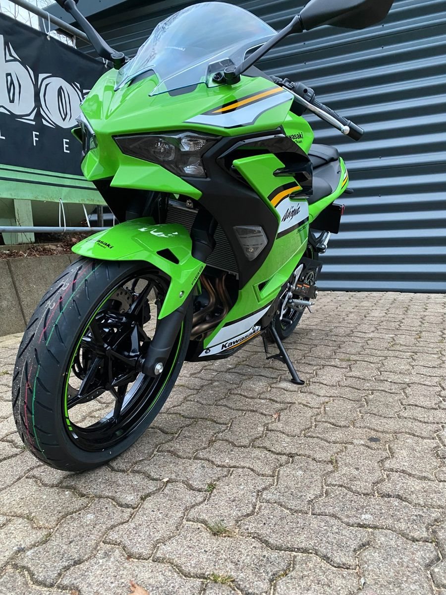 Ninja 500 SE: mit dieser echten Ninja, passend für die Führerscheinklasse A2, kommst du überall gut an. Einfache Bedienung ist das A und O, denn das kompakte Chassis wurde so konzipiert, dass es so benutzerfreundlich wie möglich ist. Der 451 cm Motor der Ninja 500 ist jeder Herausforderung gewachsen. Die Leistung ist über den gesamten Drehzahlbereich verfügbar, sodass der Fahrer sie problemlos nutzen kann: von der niedrigen Drehzahl zum Beschleunigen in der Stadt bis zur Höchstdrehzahl für Fahrten auf der Autobahn.