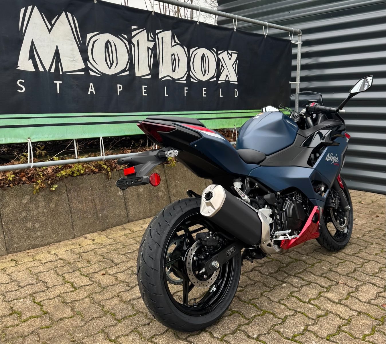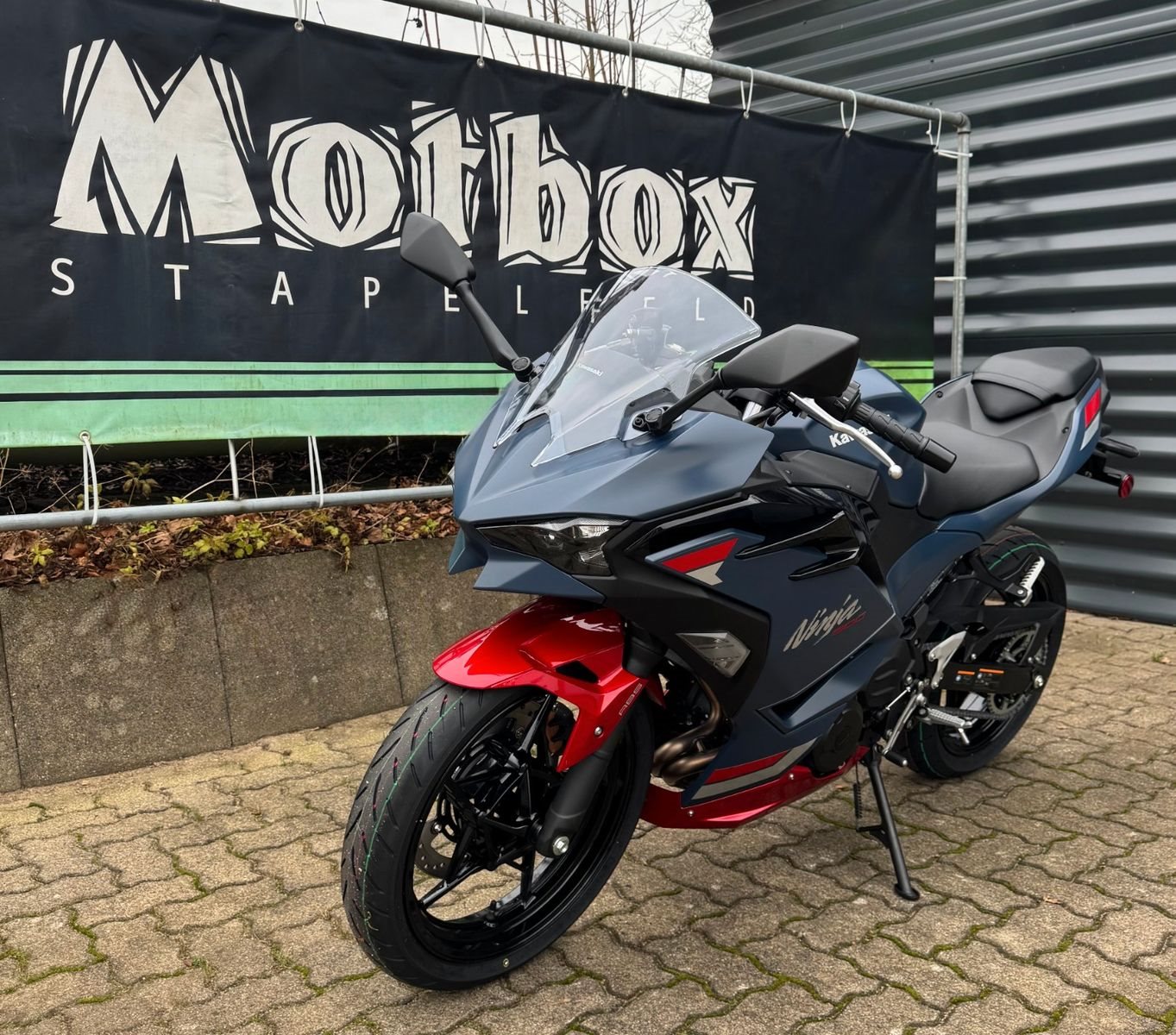 Ninja 500 SE: mit dieser echten Ninja, passend für die Führerscheinklasse A2, kommst du überall gut an. Einfache Bedienung ist das A und O, denn das kompakte Chassis wurde so konzipiert, dass es so benutzerfreundlich wie möglich ist. Der 451 cm Motor der Ninja 500 ist jeder Herausforderung gewachsen. Die Leistung ist über den gesamten Drehzahlbereich verfügbar, sodass der Fahrer sie problemlos nutzen kann: von der niedrigen Drehzahl zum Beschleunigen in der Stadt bis zur Höchstdrehzahl für Fahrten auf der Autobahn.