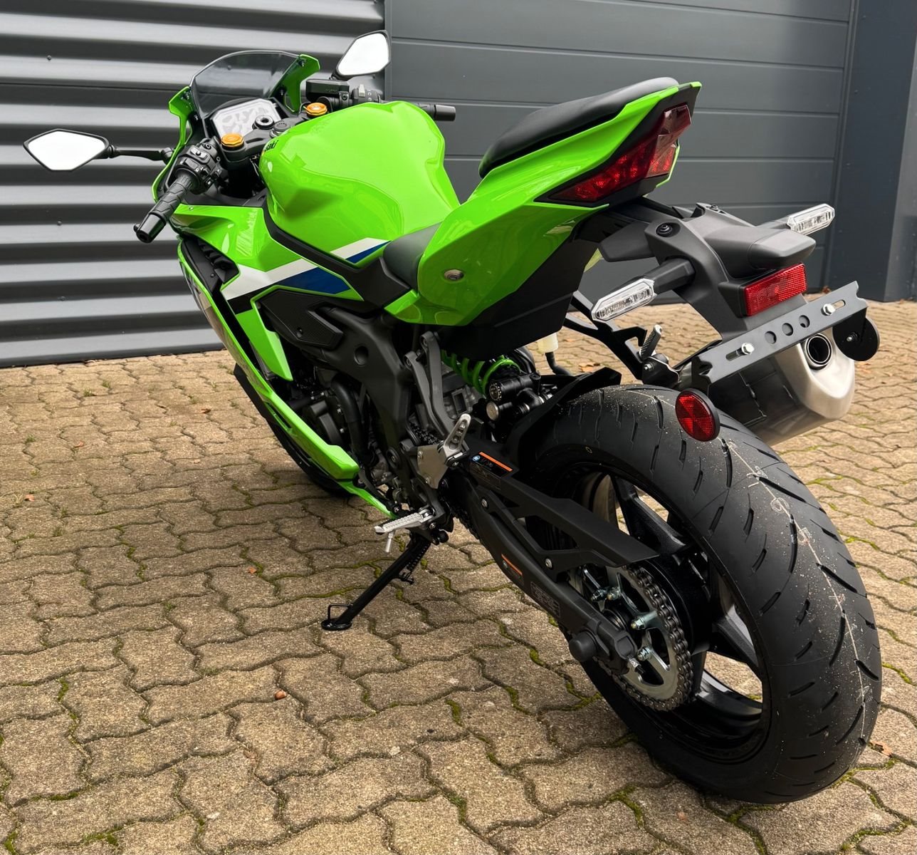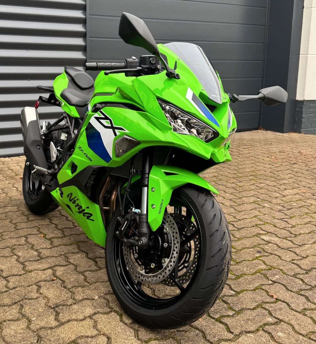 Mit der neuen Ninja ZX-4RR wurde die 400-cm-Klasse revolutioniert. Ihr neu entwickelter, sehr drehfreudiger 4-Zylinder Reihenmotor mit 77PS (57kW), in Zusammenspiel mit einem leichten und ausgewogenen Handling, macht die Ninja ZX-4RR zu einem Leistungssportler. Ideal für Sport- oder Rennstreckenfahrten. Das starke Drehmoment der ZX-4RR im unteren bis mittleren Drehzahlbereich macht sie aber auch fit für Stadtfahrten.