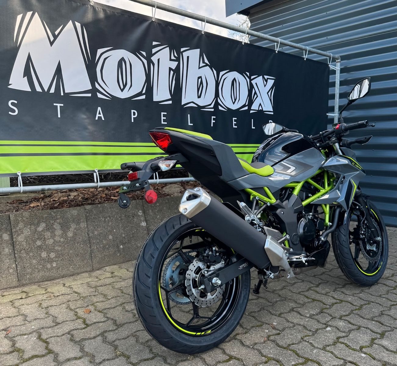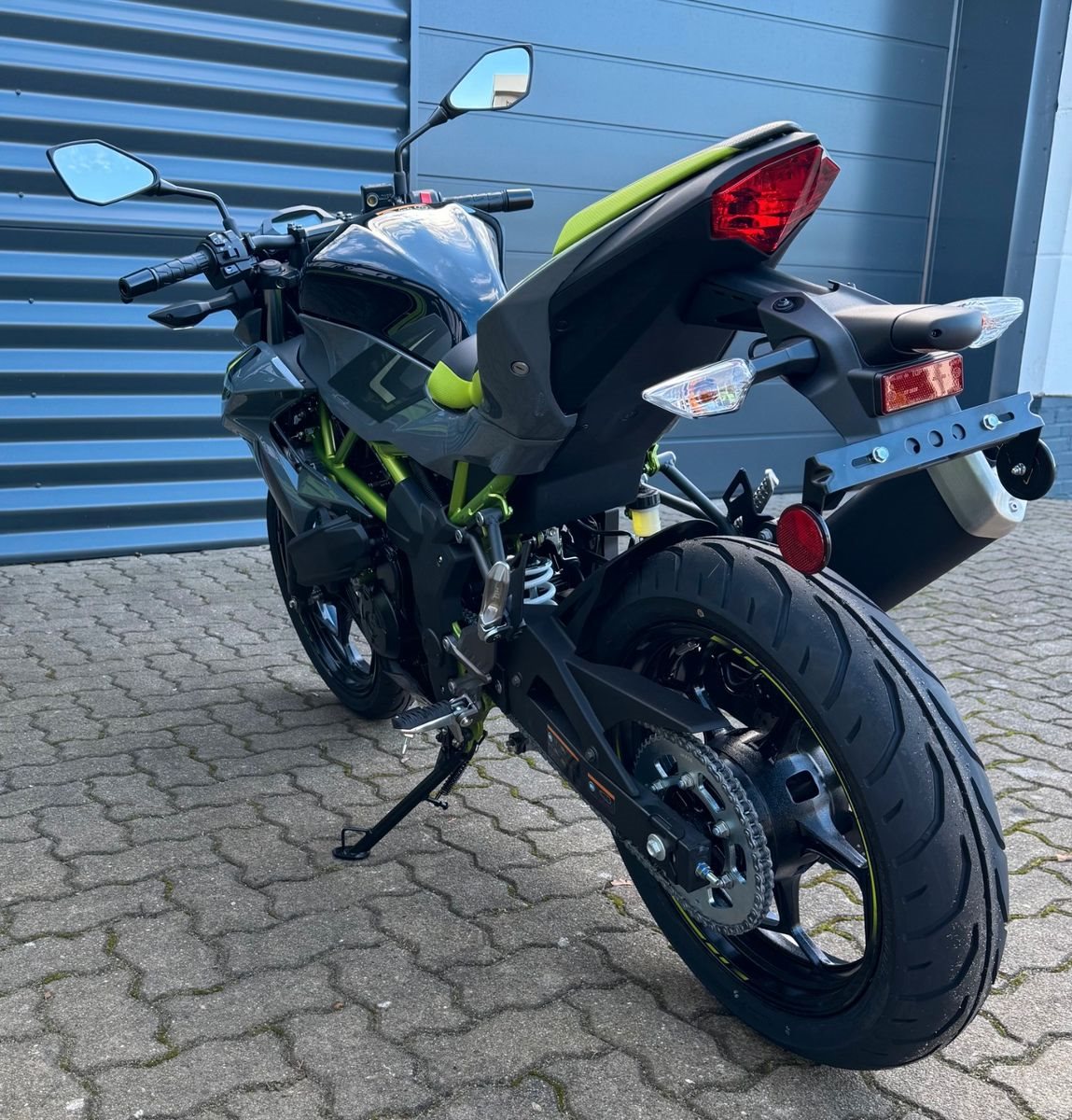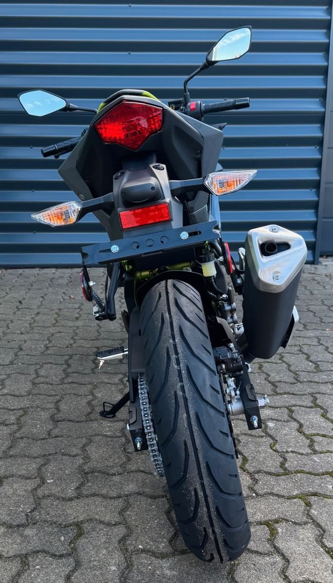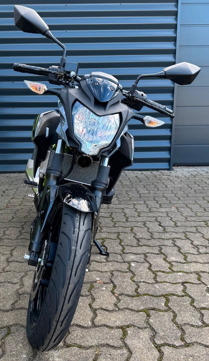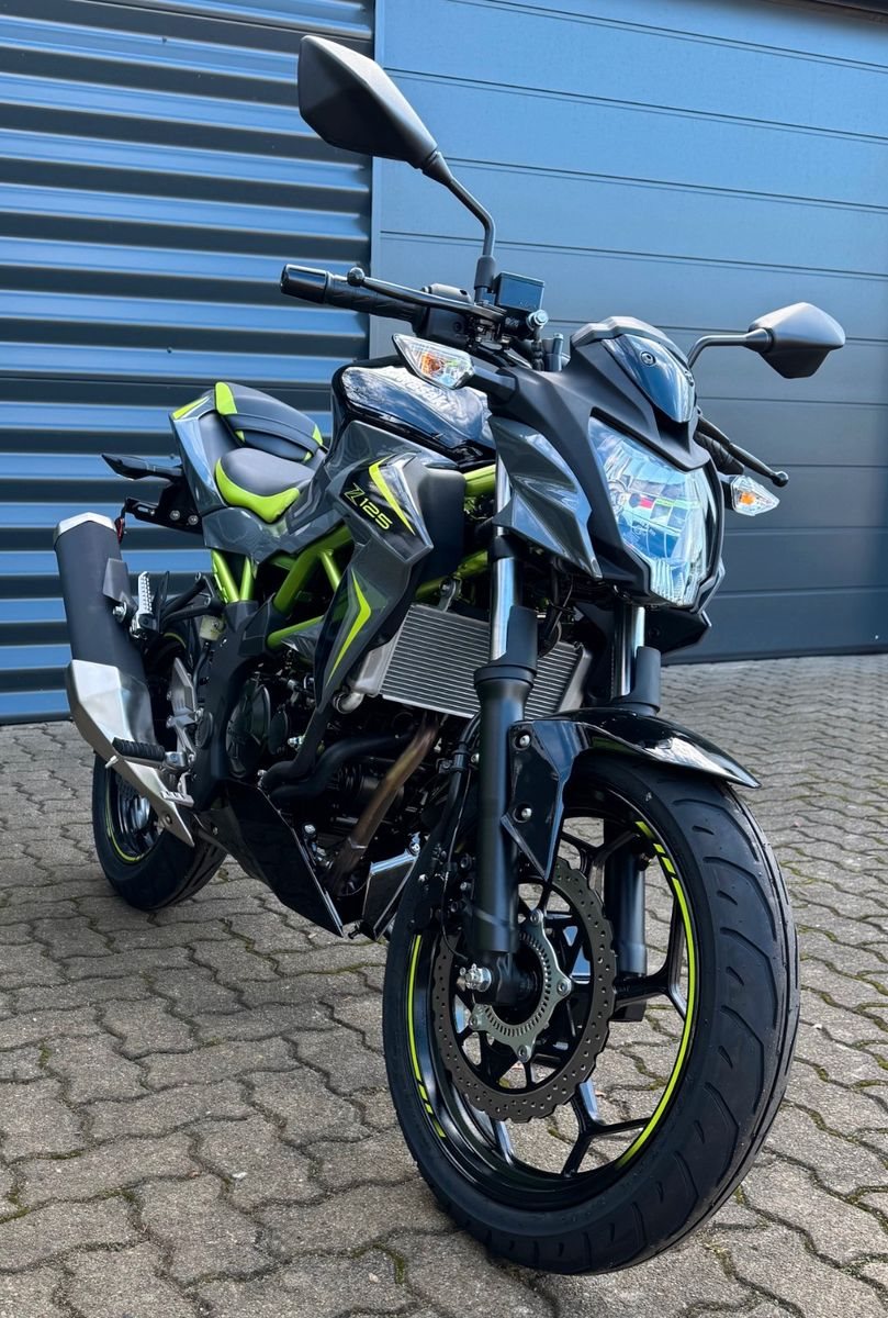 Mit Kawasakis einzigartiger Sugomi-Designphilosophie, die sofort ins Auge fällt, präsentiert sich das kleinste Mitglied der Z-Familie. Auffallen und ein starkes Naked-Bike-Statement setzen - genau dafür ist sie da. Der freiliegende Gitterrohrrahmen verbindet sich mit der minimalistischen, aggressiven Z-Verkleidung und lädt zu sportlicher Fahrweise ein. Der kraftvolle Motor ist sowohl einsteigerfreundlich als auch so sportlich, wie man es von Kawasaki erwartet. Die Z125 kann mit dem A1-Fu?hrerschein oder mit dem Autofu?hrerschein ab 25 Jahren (B196) gefahren werden und bietet ideale Voraussetzungen fu?r Führerschein-Neulinge.
