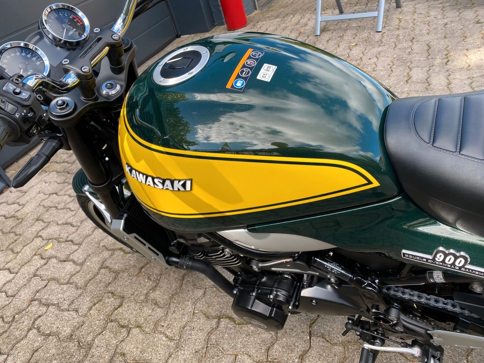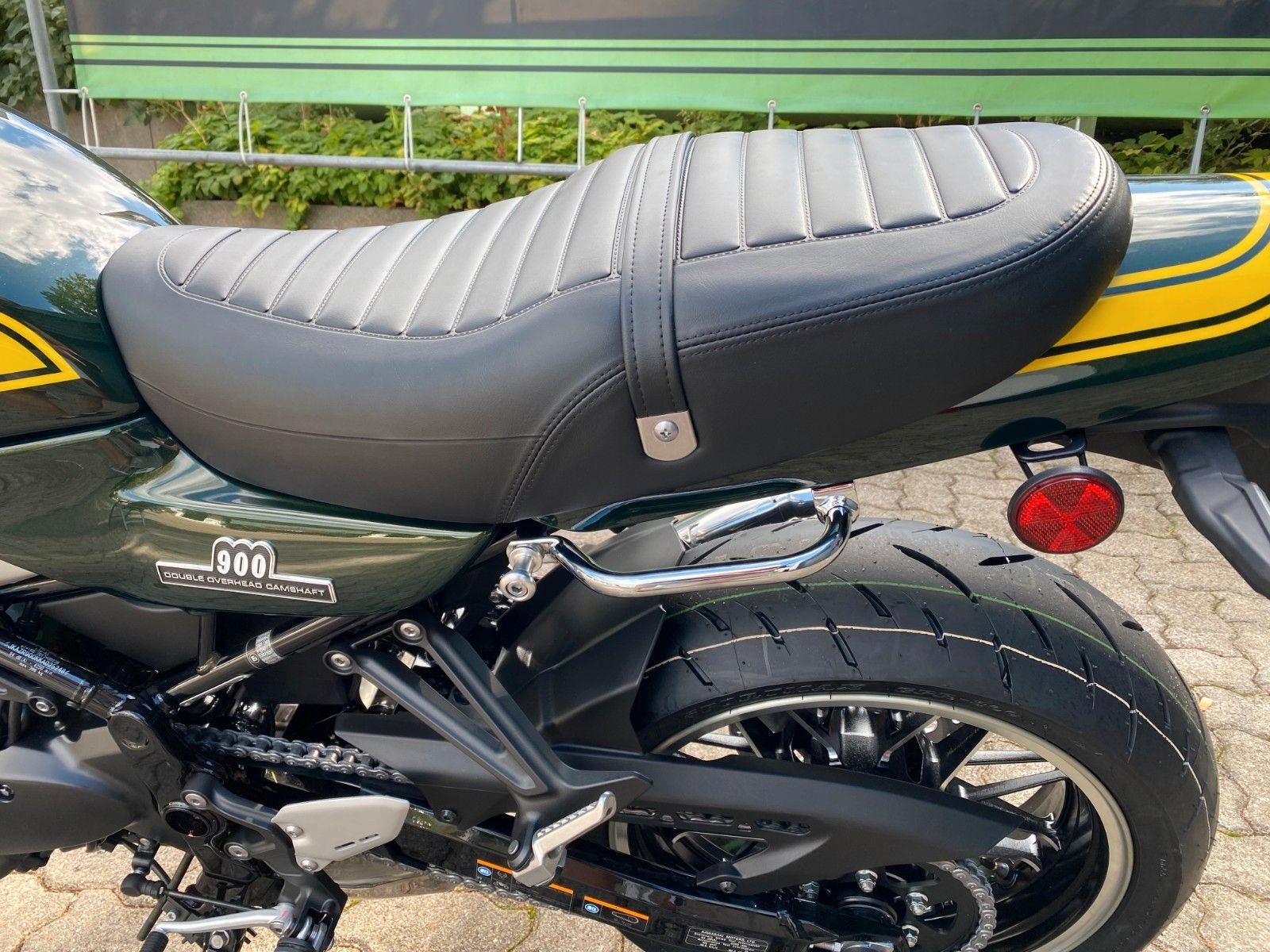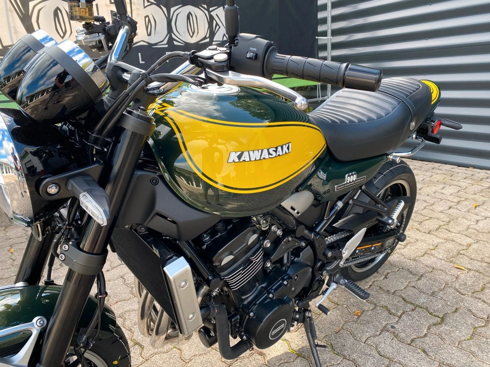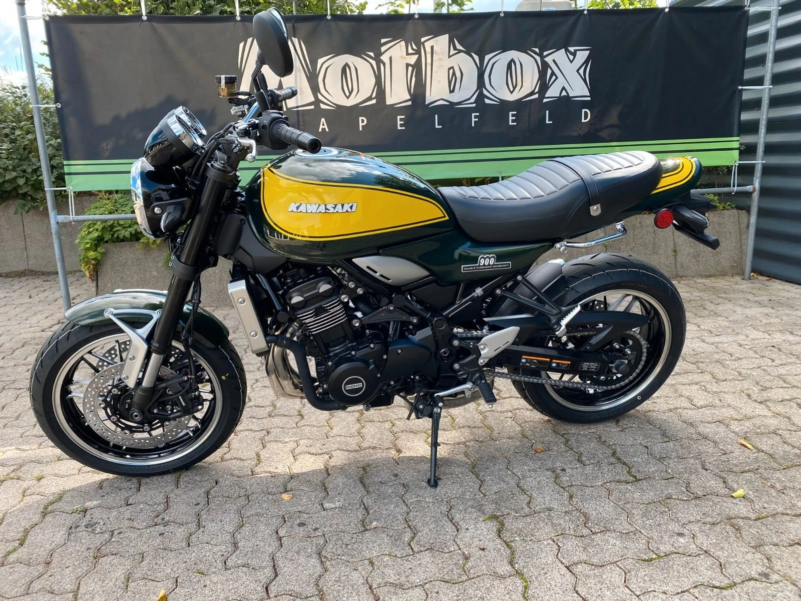 Diese schöne Z900RS präsentiert sich in schickem grün-gelb.