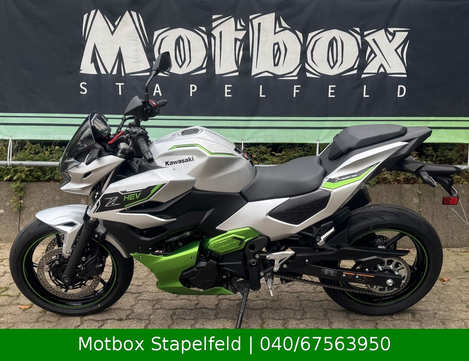 Das weltweit ersteVoll-Hybrid-Motorrad*von Kawasaki. Die einzigartige Kraftentfaltung eines Verbrennungsmotors mit 451 cm und einem kompakten E-Antrieb schafft ein besonderes Fahrerlebnis beim weltweit ersten Voll-Hybrid-Motorrad: Ein Mittelklasse-Bike mit dem Beschleunigungsvermo?gen eines 1.000-cm-Sportmotorrads aus dem Stand (mit E-Boost) - der Verbrauch entspricht aber der 250-Kubikzentimeter-Klasse. Wie das Schwestermodell Ninja 7 Hybrid verfu?gt auch die Z7 Hybrid u?ber drei unterschiedliche Fahrmodi und eine Vielzahl innovativer Details. Eine neue A?ra im Motorradbau hat begonnen.